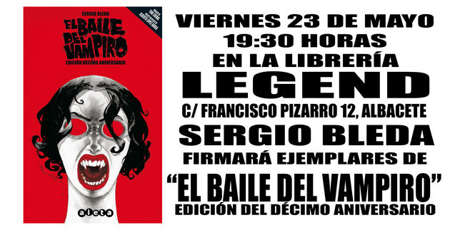 El próximo viernes 23 de mayo a las 19:30 horas el autor Sergio Bleda presentará en la librería ’Legend’ (C/ Francisco Pizarro 12, Albacete) la edición del décimo aniversario de su obra ’El Baile del Vampiro’.