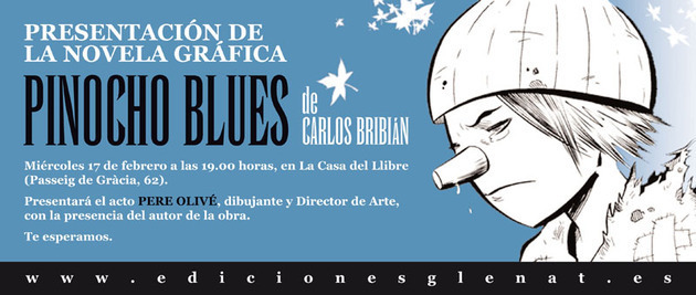 El próximo miércoles 17 de febrero, a las 19h, se presentará en La Casa del Llibre de Barcelona (Paseo de Gracia, 62) la novela gráfica Pinocho Blues, de Carlos Bribián.
