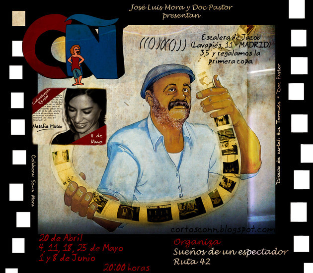 Además, en esta edición se producirá durante la jornada de proyecciones del 11 de mayo la ceremonia de entrega del I Premio Cortometrajista Ejemplar, de Cortos con Ñ, que tiene como objetivo reconocer la labor de difusión del cortometraje en España por parte de intérpretes, guionistas, directores, productores, críticos, etc... Así, en esta ocasión tenemos el honor de premiar a la actriz, guionista y realizadora Natalia Mateo, protagonista de largometrajes como La Vergüenza cuya vida profesional en el mundo del cine ha estado muy ligada al campo del cortometraje, donde ha participado en obras como Test, Pichis, Carisma, Quid Pro Quo o Equipajes. Las distintas jornadas de proyecciones de Cortos con Ñ 4 comenzarán a partir de las 20h y cada entrada incluye una consumición que os podréis tomar en el bar del teatro, una vez finalicen las proyecciones. Programación de Cortos con Ñ 20 de abril La impresión, de Gerard Clua. (Asistente de dirección: María Del Río). Con Sonia Mora y José Luis Mora. Retrato de mujer blanca con navaja, de Carlos Ceacero. Con Vicky Peña y Natalia Mateo. Madrid-Moscú, de Javier San Román. Con Paco Marín, Pilar Bardem, Celine Tyll, Carolina Bang y Sergio Calderón. 8:00am, de Pablo Ortega. Con Marta Suárez, Alfonso Begara y Carlos Martínez. Connecting People, de Álvaro de la Hoz. Con Marta Hazas y Sergio Mur. La impresión, de Gerard Clua. Con Jose Luis Mora y Sonia Mora. 4 de mayo Dicen, de Juanma Carrillo. Con Saida Benzal y Manuela Burló. Bilingües / Bilinguals, de Rafa Rojas-Díez y Jose Carlos Gomez. Con Eliya Shenhav y Rafa Rojas-Díez. La autoridad, de Xavi Sala. Con Hwidar, Belén López, Badar Bennaji, Priscila Delgado, Adolfo Fernández y Esther Ortega. Septiembre, de Julio De La Fuente. Con Carlota García, María Cotiello, Jorge Carcassona, Martín Bello, Mario Tardón y Ana Francisco. Iraultza, de Galder Arriaga. Con Luis. Ritmosis, de Adrián Ramos-Alba y Oriol Segarra García-Granados Con Daniel Pérez Prada y Teresa Soria Ruano. 11 de mayo (ceremonia de entrega del I Premio cortometrajista Ejemplar). Exprés, de Daniel Sánchez Arévalo. Con Natalia Mateo y Ana Wagener. El punto ciego, de Álex Montoya y Raúl Navarro. Con Juanjo Díaz Polo, Pedro González Del Valle, Alejandro Marzal y Natalia Mateo. Ponys, de David Planell. Con Natalia Mateo, Esther Ortega y Marta Aledo. Equipajes, de Toni Bestard y Arturo Ruiz. Con Natalia Mateo y Xisco Segura. Pichis, de Marta Aledo. Con Raúl Arévalo, Luis Callejo y Natalia Mateo. 18 de mayo Cuadrilátero, de José Carlos Ruiz. Con Mathieu Almalric, Jordi Dauder, Ángeles Maeso, Silvia Marsó y Luis Vidal Guinea. Ur, de Galder Arriaga. Con Asier. El postre, de Ángeles Maeso. Con Tània Sàrrias, Àngels Torrent, Marta Belmonte. Celos; una teoría, de Jorge Galeano. Con Lara De Miguel. Do not disturb, de Guille Ortiz y Pedro Rodrigo. Con Guadalupe Lancho y Jorge Mayor. 25 de mayo El momento justo, de Hugo Serra y Gonzalo Visedo. Con Dani Mateo, Elena Ballesteros y Darío Paso. Mentiras / Lies, de Virginia Llera. Con Julia Cerdán y Jorge Galeano. Papeles, de Eliazar. Con Zay Nuba. Martes por la mañana, de Cheli Sánchez. Con Aitor Luna. La máscara de Muerte 451, David Galán Galindo. Con David Galán Galindo, Jimena Galindo, Santiago Delgado y Javier Galán. -- Precio de la entrada: 3,50€ en taquilla (3€ en atrapalo) Cada entrada incluye una consumición que os podréis tomar en el bar del teatro. Reserva de entradas en Atrapalo. http://cortosconn.blogspot.com/2010/03/programacion-de-cortos-con-n-para-el-4.html Cortos con Ñ 4 La Escalera de Jacob. C/ Lavapiés, 11 28005 - Madrid | |||||||