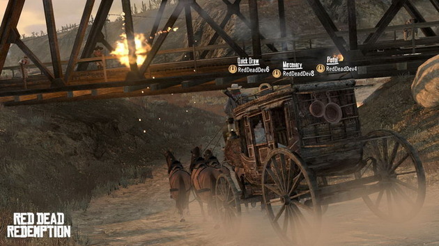 Aquí tienes nuevas pantallas exclusivas de algunas de las seis nuevas misiones cooperativas multijugador – incluyendo la recientemente desvelada misión “The Kidnapped Girl”. En esta misión, otra banda ha tomado Fort Mercer, y están reteniendo a la hija de un granjero. Tú y tu cuadrilla necesitaréis cargar contra el fuerte y eliminar a la banda con toda la capacidad de disparo necesaria – entonces esquiva a los refuerzos enemigos mientras llevas a la chica a salvo a su casa en el Rancho Ridgewood en la diligencia.Añadir Anotación