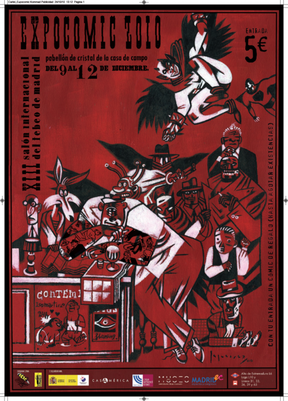 De 10:00 de la mañana a 21:00 de la noche. * Precio un día 5 € * Precio bono 4 días 12 € * Jueves 2×1 Con tu entrada un cómic de regalo hasta agotar existencias Autores invitados Agreda, José Luis Aja, David Alary, Pierre Alcázar, Vicente Arranz, Nacho Azpiri, Alfonso Azpiri, Diana y Lorena Bayarri, Jordi Bernet, Jordi Berrio, Juan Bill Bit Bleda, Sergio Bonales, Mike Bonet, Roger Burgaleta, Carlos Cafu Cailleaux, Christian Carmona, Olga Cifuentes, Vicente Cons, Tirso Diaz Canales, Juan ESDIP (colectivo) Fonollosa, José Gabor Giménez, Carlos Golden, Michael Hermann Huguet, Jesús Janson, Klaus Lopez, David Maroto, Esteban Martín Saurí, José María Martín Salvador, Santiago Massacre Merino, Jesús Miranda, Iñaki Muñoz, Ángel Olivetti, Ariel Pacheco, Carlos Padilla, Agustín Quitely, Frank Rodriguez, Carlos Royo, Luis Ruiz, Felix Ruiz, Kenny RyP, Juan José Santos, Victor Sequeiros, Santiago Solis, Fermín Tarragona, Jordi El Torres Trujillo, Javier Unzueta, Angel V. Vegas, Enrique Vicente, Fernando Viruete, José Luis Exposiciones Carlos y Emilio Freixas Santiago Sequerios : Ontología Jose Mº Martin Sauri: Arturo Alfonso Zapico: Cafe Budapest Actividades Charlas, mesas redondas, sesiones de firmas, proyecciones, talleres, cosplay, karaoke, concursos... Más información En la web oficial, http://www.expocomic.com/ Fuente: AEAC | |||||