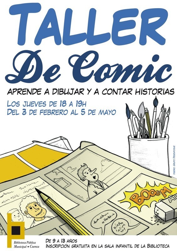 Veremos con él, tanto aspectos formales relativos a la viñeta, los personajes y el color, como el desarrollo de una idea, qué es una historia y cómo se cuenta. El taller es gratuito, y se impartirá en la sala infantil de la Biblioteca Municipal todos los jueves, en sesiones de una hora. Puedes descargarte la papeleta de inscripción en la Web de la Biblioteca Fuente: Biblioteca de Cuenca | ||||