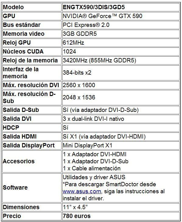 La nueva tarjeta gráfica ASUS GTX 590 estará disponible a principios de Abril a un precio de 780 euros.Añadir Anotación