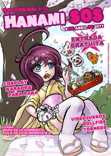 Os presentamos el Dai Yon Kai Hanami S.O.S. la cuarta edición de estas jornadas las cuales este año se realizarán en el Casal de Joves de la Guieneuta en la Plaza Ca n’Ensenya numero 4. El evento se realizará el 9 de Abril y habrá multitud de actividades como por ejemplo para-para, softcombat, diversos juegos de cartas, karaoke, torneos de videojuegos, concurso de cosplay, y muchas cosas más.