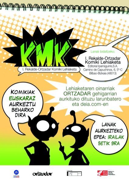 El diario DEIA y la Sala Rekalde organizan el I. Rekalde-Ortzadar Komiki Lehiaketa (KMK), un certamen que, en palabras de la directora de la Sala, Alicia Fernández, "potencia el desarrollo de la creatividad de un medio tan popular y dinámico como el cómic".