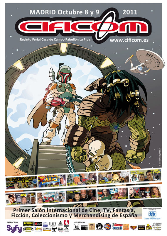 Del 08 al 09 de Octubre de 2011 1º salón internacional de cine, ficción, coleccionismo y merchandising. El evento tendrá lugar en el pabellón LA PIPA de Madrid El acceso se realizará por la Avenida Principal El recinto contará con unos 1.000m² Fechas y Horarios: Sábado 08 de Octubre: de 10:00h a 21:00h. Domingo 09 de Octubre: de 10:00 a 20:00 h. Precios: Entrada general: 15 € un día / 25 € dos días Entrada infantil: menores de 8 años 6 € un dia. La entrada se podrá adquirir en las taquillas del Salón CIFICOM Válida únicamente para una persona Entrada anticipada: 12 € un día / 20 € dos días Entrada anticipada anti crisis 35 € por persona, incluye: Entrada de dos días + Pack exclusivo de Merchandising (Camiseta-Taza-Bolígrafo-Chapa-Lanyard-Póster) Cena VIP Plazas muy limitadas Sábado 08 de Octubre de 2011 a las 22:00 h. Charla sobre STAR WARS UNIVERSE + cena con actores e invitados + entrega de premios y homenajes limite de reserva con 20 días de antelación a la fecha de la cena, Las reservas se pueden hacer por teléfono 963 23 67 76 o por internet en este enlace ENTRADA VIP CIFICOM MADRID 2011 Edición muy limitada solo 26 unidades La entrada anticipada CIFICOM MADRID 2011, Incluye: - Acreditación exclusiva - Acceso anticipado a la entrada de la convención para los días de duración - Fotografía exclusiva con los invitados - Asiento reservado en primeras filas para todos los eventos de la convención - Acceso preferente en las colas de fotos - Autógrafos y un cóctel privado con los actores el Sábado por la tarde ENTRADA VIP PLUS++ CIFICOM MADRID 2011 Edición muy limitada solo 10 unidades La entrada anticipada CIFICOM MADRID 2011, Incluye: - Acreditación exclusiva - Presencia en la rueda de prensa - Zona de consigna de compras - Acceso anticipado a la entrada de la convención para los días de duración - Fotografía exclusiva con los invitados - Asiento reservado en primera fila para todos los eventos de la convención - Acceso directo en las colas de fotos - Autógrafos y un cóctel privado con los actores el Sábado por la tarde - Pack exclusivo de Merchandising (Camiseta-Taza-Bolígrafo-Chapa-Lanyard-Póster) - Cena VIP incluida y en la misma mesa que los actores - Placa conmemorativa MÁS INFORMACIÓN En la web oficial, http://www.cificom.es/ Fuente: organización | |||||