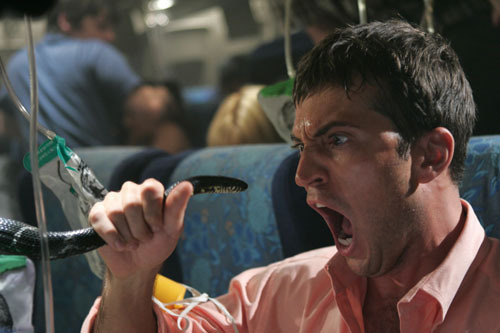 El agente del FBI Neville Flynn (Samuel L. Jackson) es un experto en situaciones peligrosas. Salvará a Sean del primer intento de asesinato de Eddie Kim pocas horas después de la muerte del fiscal. Y se preparará para enfrentarse al reto de llevar a Sean a Los Ángeles y así encarcelar a uno de los criminales más buscados de Estados Unidos. Su plan consiste en utilizar un avión privado como señuelo y a la vez ocupar el piso superior de un avión comercial para llevar a Sean al juicio. Sin embargo, un informador de Kim en el aeropuerto le pasa los detalles del plan y ahora lo único que tiene que hacer Kim es asegurarse de que el avión no llegue a Los Ángeles o de que Sean no baje vivo de él avión. ¿Y cómo lo hará?..... Introduciendo SERPIENTES en el avión. Colocan cientos de serpientes venenosas de todos los tamaños en la bodega del avión, que se liberarán después del despegue gracias a un temporizador. Deslizándose por el sistema de ventilación y cableado, destrozarán instalaciones operativas vitales. Debido a todas las feromonas que han inhalado en la bodega, las serpientes se vuelven más agresivas y cuando entran en la cabina se lanzan a matar convirtiéndose en una amenaza letal. Si quieren sobrevivir, la tripulación y los pasajeros deberán colaborar para mantener alejadas a las serpientes, una tarea nada fácil dado que pueden salir de cualquier agujero sin apenas dejarse notar. Flynn y la azafata Claire Miller (Julianna Margulies) hacen lo que pueden para que todos mantengan la calma durante el ataque. Todos tienen que ponerse manos a la obra para defenderse del ataque y mantener vivo al testigo principal. Entre los pasajeros se encuentran Mercedes (Rachel Blanchard), una joven rica que va de fiesta en fiesta en Los Ángeles y que no se separa de su teléfono móvil ni de su perrita Mary-Kate; Three G’s (Flex Alexander), una nueva estrella del rap alérgico a los gérmenes y que viaja con sus compañeros de fatigas Troy (Kenan Thompson) y Big Leroy (Keith Dallas); y María (Elsa Pataky), una joven madre que viaja con su bebe, además de los tripulantes Ken (Bruce James), a punto de jubilarse, Grace (Lin Shaye) y la coqueta Tiffany (Sunny Mabrey). Este grupo dispar deberá unirse ahora si quiere tener alguna posibilidad de sobrevivir al ataque de las serpientes o al posible fallo mecánico provocado por éstas a más de 10.000 metros. Este thriller de New Line Cinema está protagonizado por Samuel L. Jackson (Coach Carter, La guerra de las galaxias: Episodio III - La venganza de los sith), Julianna Margulies (Urgencias, Ghost Ship: Barco fantasma ) y Nathan Phillips (Australian Rules, Under the Radar ), dirigido por David R. Ellis (Destino final 2, Cellular) y producido por Gary M. Levinsohn (Salvar al soldado Ryan, El patriota), Don Granger (Timeline) y Craig Berenson. El guión es de John Heffernan. El notable reparto cuenta además con Rachel Blanchard (De perdidos al río, Where the truth lies), Flex Alexander (One on One), Kenan Thompson (La hija de mi jefe, Fat Albert), Sunny Mabrey (XXX: Estado de emergencia), la estrella española Elsa Pataky, Lin Shaye, Bobby Cannavalle y David Koechner. Detrás de las cámaras, la producción ha podido contar con el talento del director de fotografía Adam Greenberg (Terminator, Santa Claus 2), el diseñador de producción Jaymes Hinkle (La prueba perfecta, Cellular), la diseñadora de vestuario Karen Matthews (Stealing Sinatra, White Noise: Más allá), el montador Howard Smith (Blade Trinity), el supervisor de efectos especiales Erik Henry (Drácula, Gothika) y el especialista en serpientes Jules Sylvester. | |||