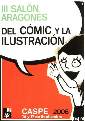 Horario: sábado, de 10:00 a 14:30 y de 16:30 a 23:00 y domingo de 11:00 a 14:30 y de 16:30 a 20:00 Precio: entrada gratuita. Junto con la entrada se regalará la revista del salón. Transporte desde Zaragoza: la organización concertará trenes y autobuses a precios moderados. AUTORES INVITADOS: Rafael López Espí (Barcelona, 1937) Azagra (Zaragoza, 1957) forma parte del sector radical y reivindicativo de los historietistas que pretenden reflejar la sociedad actual El dibuja lo que es. Como si de un reportero gráfico de tratara, informa de lo que ocurre tras el bunker del comedor y sala de estar. Ha publicado en Makoki, El Jueves, Liberación, Butifarra!, El Triangle, Malavida o Molocotón con vino. Alberto Cirac, “Tinaja” (1972) vive en Caspe. donde fundó con otros amigos "La Moscarda", revista donde publicó sus primeros dibujos. Dibujó "Los Humanistas de Alcañiz", "El Compromiso de Caspe" y "Juán Fernández de Heredia". Actualmente ilustra libros para los Colegios y realiza cada semana en "La Comarca" un chiste en sus paginas editoriales y una tira gráfica en la contraportada: Sonia. José Antonio Bernal (Zaragoza, 1979) es autor de las caries Gliceryl y Gum y de Los Bonilla, de tal palo tal astilla y con el que ha sido galardonado con los Premios Jovenes Creadores 2005 y Certamen de cómics de Cornellá 2005 (categoría humor). Colabora con la prestigiosa revista “El Jueves” y con sus tiras cómicas deportivas en Heraldo de Aragón, Zaracómic, etc. Carlos Errazu, “Kalitos” (Zaragoza) A mediados de los años ochenta co-fundador del fanzine Kaspa de Rata. Ha publicado en El Víbora, Makoki, TEMEO y Puta Mili de El Jueves. Finalmente, recayó en BURZ cómics con su serie, ambientada en el mundo de los superheroes Psicótico donde lleva ya 4 tomos. David Guirao (Zaragoza, 1973) alterna su trabajo como diseñador gráfico con el mundo de la animación y la ilustración, y desde hace varios años colabora asiduamente en las actividades editoriales de la Universidad de Zaragoza. Es ilustrador de la revista de información del CIPAJ y de Moneda Única, especializada en comercio exterior. Entre los libros que ha ilustrado destacan: El corazón rojo y El canario de Brunei con Daniel Nesquens. Mauro Entrialgo (Vitoria, 1965). Este polifacético artista, autor de las historietas de personajes como Herminio Bolaextra, La pandilla galáctica, Tirex, El Demonio Rojo o Ángel Sefija también ha escrito el largometraje Gente Pez, cuatro obras de teatro y muchos sketchs para televisión. Además, ha grabado varios discos con su grupo Esteban Light y elabora desde hace años una serie de piezas de video titulada Trocitos de mi vida, entre otras muchas actividades. Jordi Bayarri (Valencia, 1972). Dibuja desde los cuatro años, parando a veces para comer o dormir. Estudió Bellas Artes, y en la facultad aprendió a perder el tiempo tontamente en el bar. Ahora trabaja en Black Maria Studios, un estudio de animación de Valencia. Vive con su novia y su perro (el perro de su novia) en un piso de alquiler. Está aprendiendo a dibujar caballos y a no dormir. Ignacio Murillo "Furillo" (Zaragoza, 1976). Publica habitualmente en la revista TEMO. Su última obra es “Donde hay pelo hay alegría” Jesús Saiz (Zaragoza, 1973) forma junto a Fernando Blanco y David López el fanzine 451º. Trabaja para diversas publicaciones españolas (Planeta d’Agostini, Cimoc 2000, Norma Editorial) hasta que posteriormente da el gran salto a USA donde dibuja para Dark Horse y DC, entre otros, series como Star Wars Tales, JLA: Black Baptism, Midnight, Mass, ... Moratha (Daroca, 1970) El padre de Mariano, el porrero medieval es uno de los más prolíficos autores aragoneses. Entre sus obras destaca La morica encantada (leyenda de Daroca). PROGRAMA Sábado 16 10:00. Inicio campeonato Rol 11:00. Inauguración III Salón del Cómic y la Ilustración de Caspe (Zaragoza). 11:00. Taller de cómic para niños, con Malavida. 11:30. Exhibición de Manga. 11:30. Títeres de Supermaño 12:30. Entrega de Premios III Salón del Cómic y la Ilustración de Caspe y presentación del libro de relatos cortos. 13:30. Visita guiada a la exposición "Discos con portadas de Mauro Entrialgo". El propio autor comentará en directo una por una las piezas de la muestra. 16:30. Mesa redonda: “Los dibujantes de tebeos: de la afición a la profesión”. Participan: Jesus Saiz, Tinaja, Furillo, Bruno Redondo y Azagra. Modera: Juan Royo. 17:30. Mesa redonda. Los blogs sobre cómic. Participan: eMe A de “El blog de A.D.L.O!”, Dionisio de “El rincón de Taula”, Latro de “Bajo la máscara”, Iru de “En blanco” y Santiago Jurado de “El blog de Mortadelón”. Modera: Marcos J. Wander. 18:30. Títeres de Supermaño 19:00. Proyección del documental “De Superman a Spiderman. Historia de los superhéroes”. 23:00. Entrega de Premios Juegos de Rol III Salón del Cómic y la Ilustración de Caspe. Domingo 17 11:00. Taller de cómic manga, por Arashi. 12:00. Zona Manga: Competiciones DDR y videojuegos. Organiza Asociación Arashi. 12:00. Mesa redonda El cómic y la ilustración. La conexión con el mundo de la publicidad. Participan: Javier Solchaga, David Guirao, Bernal y Jordi Bayarri. Modera: Juan Royo. 13:00. Clase Magistral por Rafael López-Espí. 16:30. Presentación de novedades: Stupider-Man, (Kalitos. Editorial Cornoque), El Chocholoco (Malavida, Editorial Cornoque), tercera edición del Señor de los Panchitos y Los domingos (Mauro Entrialgo, ediciones Ponent). 17:30. Presentación de las Jornaicas de Manga, por Tatakae y de la Asociación de Autores de Cómics españoles (AACE). 17:30. Proyección de la película Metropolis de Tezuka. 17:30. Exhibición Manga y final de las competiciones. 18:30. Actuación de Mangaku Musume. 19:30. Entrega de Premios DDR, y videojuegos Manga III Salón del Cómic y la Ilustración de Caspe. 19:30. Clausura TRANSPORTE AUTOBUSES (Salida y regreso en Paraninfo - Plaza Paraíso) sá