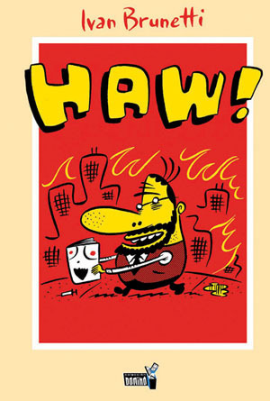 En octubre aparece dentro de la Línea Dominó Haw!, de Ivan Brunetti, autor virtualmente desconocido en España, pero que en EE.UU. tiene una gran reputación como autor independiente, sobre todo por su obra más conocida, Schizo. Haw! es una colección de chistes groseros, brutos, bastos, hirientes, demenciales, sangrantes, donde no admite ninguna censura y demuestra que esto del humor es lo suyo… o no.