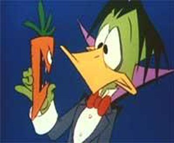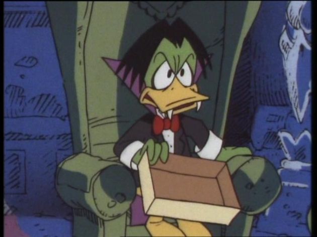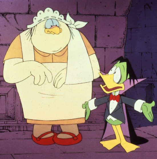Así comienza esta serie Inglesa de finales de los 80. Si las Supernenas fueron creadas con Azúcar, especias y muchas cosas bonitas este conde Duckula fue creado con ala de murciélago y Salsa de tomate. En sus aventuras (este pato mal criado pero a la vez adorable) esta acompañado por su sirvienta Nanny (una gran “gallina o gaviota” con un ala vendada y una frase que la caracteriza “iré por ella”) y un Mayordomo ( Igor, un buitre con malas pulgas y que le tiene algo de odio a Duckula e intentara eliminarlo sin que este tenga la mínima duda de él). A todo esto hay que añadirle a su Archí enemigo, el cazador de patos vampiros Von Goosewing (claro homenaje a Van Helsing) que le hará la vida imposible al pato verde. Una serie divertidísima con muy buen humor, cada episodio es una maravilla para la vista y los oídos, donde Nanny con su torpeza ayudara a su querido pato muchas veces sin darse cuenta. Una de mis series favoritas que deberían emitirla de nuevo, esto si que son dibujos de verdad.