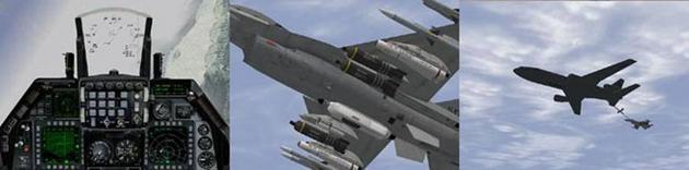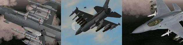 - Lanza una gran variedad de misiles aire-aire como los AIM-120 AMRAAM y los AIM-9 Sidewinder. Despliega un amplio rango de armamento aire-tierra incluyendo AGM-65 Maverick, AGM-88 HARM, bombas en racimo, bombas guiadas por láser, etc.. Los sistemas de armas están simulados utilizando las especificaciones públicas disponibles sobre las mismas.Añadir Anotación
