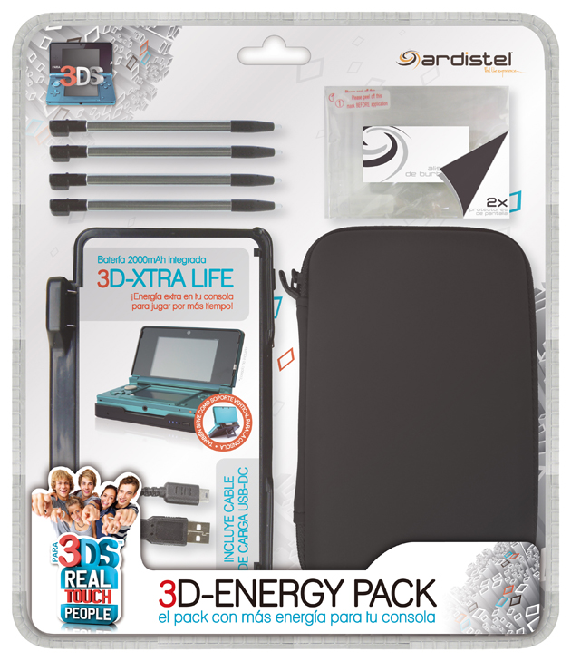 Ardistel acaba de sacar al mercado un pack imprescindible para tu consola 3DS™. Su principal atracción es que cuenta con una batería extra para tu consola, para que puedas jugar por más tiempo allá donde estés, además de poder usarla como soporte vertical. El pack incluye también un útil estuche para transportar tu consola y sus accesorios, 4 stylus retráctiles ,2 protectores de pantalla y una gamuza de limpieza. En definitiva, ¡el pack con más energía para disfrutar de tu consola!Añadir Anotación
