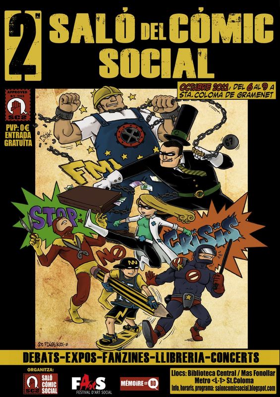Una de ellas, es la de reunir en una misma mesa a gente del mundo del cómic junto a la de los movimientos sociales para hablar de como ven ambos colectivos estos complicados tiempos que estamos viviendo. Además de que el público puede intervenir como tercer miembro activo enriqueciendo mucho más la experiencia. La segunda razón, es su gratuidad y la posibilidad de mezclar tanto a los amantes del 9ºArte, como a cualquier ciudadano inquieto que quiera hacer una incursión en el cómic más maduro. Esto demuestra que un evento así es posible de realizar, simplemente con mucho esfuerzo, pasión y trabajo, como cualquier cosa que se desee en la vida. Por ejemplo, realizar este cartel en mis vacaciones, espero que os guste. El resto de razones por las que el Salón del Cómic Social es un evento diferente, os animo a descubrirlas allí en Octubre. Más información En el blog oficial, http://saloncomicsocial.blogspot.com/ Fuente: organización | |||