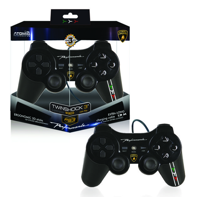 Lamborghini Controller para PS3. Este mando, con el diseño exclusivo de Lamborghini hará las delicias de todos. Posee unos gatillos traseros más largos pensados para un agarre óptimo, un botón de “macro” que te permitirá almacenar hasta 15 secuencias de botones y sus joysticks tienen una forma exclusiva que te facilitará el agarre y el control de tu personaje.