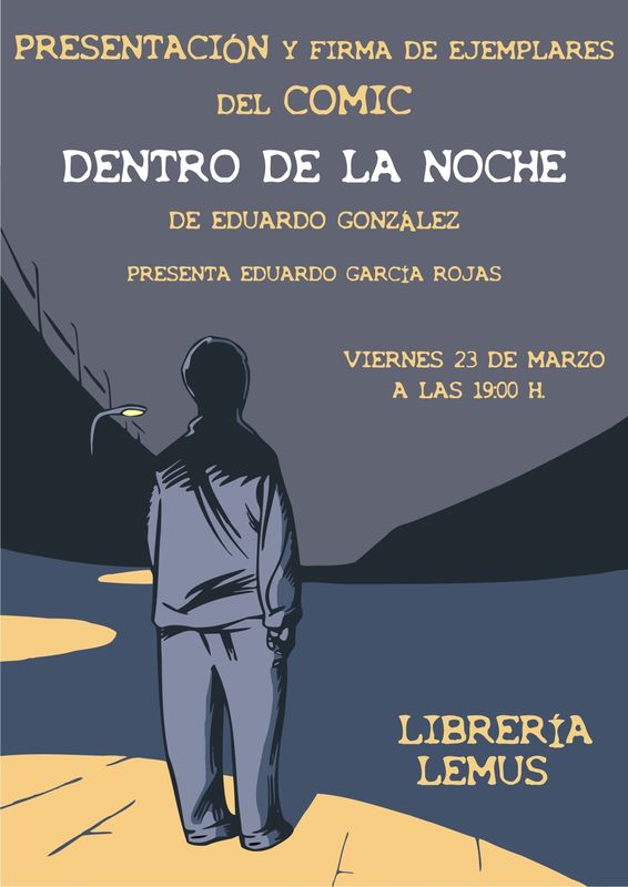 Este viernes 23 a las 19:00 en la librería Lemus de San Cristobal de La Laguna (calle Heraclio Sánchez, 64), se presentará el cómic Dentro de la Noche, con la presencia de su autor Eduardo González y el acompañamiento de Eduardo García Rojas como conductor de la presentación.