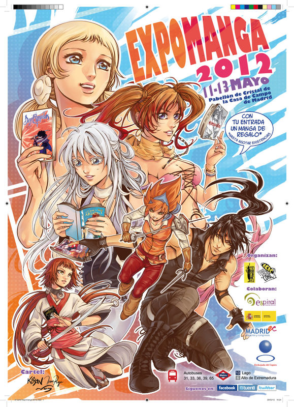 Ya tenemos cartel para la XI edición del Salón del Manga y la Cultura Oriental de Madrid – Expomanga 2012, que se celebrará los días 11, 12 y 13 de mayo en el Pabellón de Cristal de la Casa de Campo; un trabajo que, en palabras de Emilio Gonzalo, director del evento, «quiere reconocer el esfuerzo de las autoras españolas, que están colocando el manga nacional en un lugar impensable hace unos años». Así, en esta ocasión viene firmado por Irene Roga, Studio Kôsen y Noiry, que han preparado un vibrante y explosivo cóctel de dinamismo y color que representa los principales personajes de Línea Gaijin, el ramal dedicado al cómic nipón de EDT. Un crisol que quiere festejar y apuntalar el amor y la pasión de los aficionados por el noveno arte oriental, cuyo crecimiento se antoja verdaderamente imparable de un tiempo a esta parte. «Tenemos muchas sorpresas para todos, nadie quedará insatisfecho en esta nueva fiesta que celebra nuestra afición favorita», concluye Gonzalo. Ya queda menos...Añadir Anotación