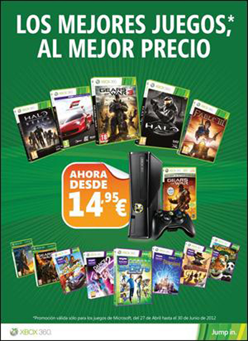 Nadie debería dejar escapar esta oportunidad de completar su colección con algunos de los juegos que han marcado un antes y un después en la historia del entretenimiento interactivo. Lista de juegos y PVPR: • “Gears of War 3” 29,95 € • “Forza Motorsport 4” 29,95 € • “Halo: Combat Evolved Anniversary” 19,95 € • “Halo Reach” 19,95 € • “Fable III” 19,95 € • “Kinect Star Wars” 29,95 € • “Kinect Rush: Una Aventura Disney·Pixar” 29,95 € • “Kinect Sports” 29,95 € • “Kinect Sports: Segunda Temporada” 29,95 € • “Dance Central 2” 29,95 € • “Dance Central” 29,95 € • “Kinect Disneyland Adventures” 29,95 € • “Cars 2” 29,95 € • “Disney Universe” 19,95 € • “LEGO Piratas del Caribe” 19,95 € • “Gears of War” 14,95 € • “Gears of War 2” 14,95 € • “Alan Wake” 19,95 € • “Fable II” 14,95 € • “Forza Motorsport 3 Ultimate Edition” 19,95 € • “Crackdown 2” 19,95 € • “Halo 3” 14,95 € • “Halo ODST” 19,95 € • “Halo Wars” 14,95 € • “Mass Effect” 14,95 € • “The Gunstringer” 19,95 € • “Kinectimals: Ahora con Osos” 29,95 € • “Kinect Joy Ride” 14,95 € | |||