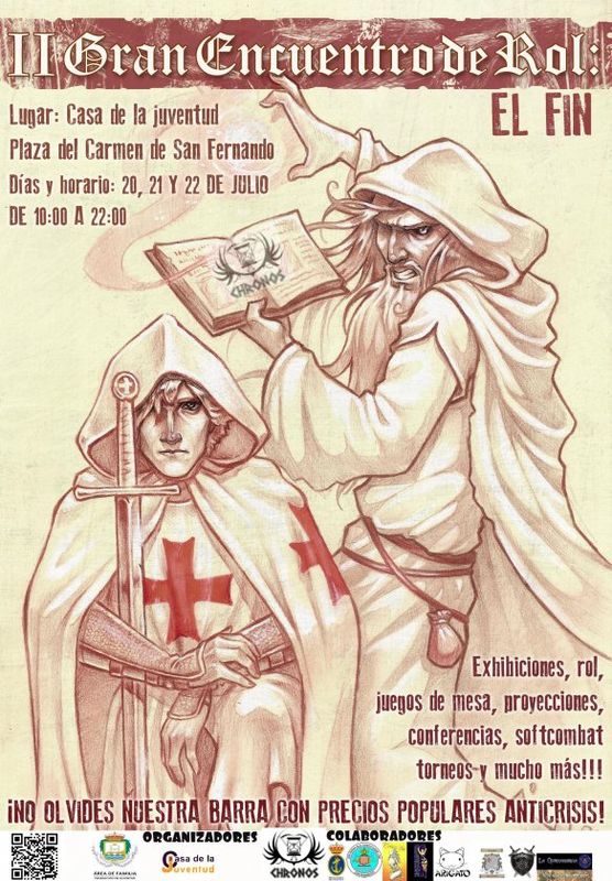 La Asociación Chronos organiza el "II Gran Encuentro de Rol: El Fin" entre el 20 y el 22 de Julio en la Casa de la Juventud de San Fernando, Plaza del Carmen.