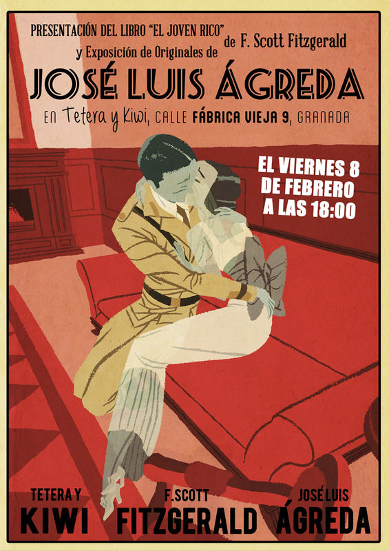 Exposición de originales y presentación en la galería Tetera y Kiwi, de Granada, del libro “El Joven Rico”, de F. Scott Fitzgerald, editado por Metropolisiana e ilustrado por Ágreda, que estará presente en la inaguración