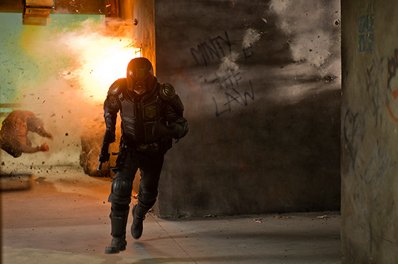 Y es que, sin querer entrar en evidentes comparaciones, "Dredd" es todo lo que "Juez Dredd" no pudo ser, sobre todo en el terreno de la dirección, la crudeza y la violencia que necesita el personaje. Estamos ante una película que no escatima en sangre, en muertos, en acción y mucho menos en miembros saltando por los aires o criminales destrozados por las balas del protagonista. Acción de la buena, de calidad, bien rodada, bien contada y magnificamente desarrollada, dandonos algunos momentos impresionantes, como cierta persecución, o todo el tiempo que transcurre dentro del edificio, e incluso los momentos Slo-Mo, muy bien conseguidos. Y es que, otro de los grandes factores del filme es que sea un producto britanico y que el dinero les haya cundido; sólo hay que ver lo bien recreada que está Mega City 1, repito, con la mitad del dinero que costó en su momento la primera entrega.
