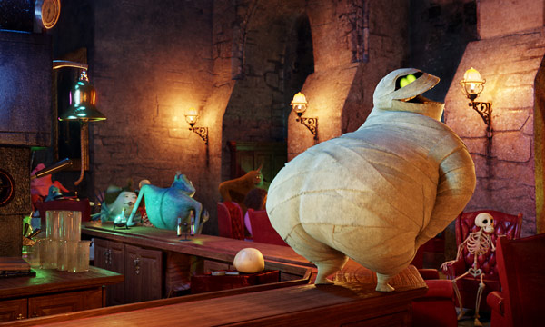 Todo este cruce de personajes, el encuentro entre los dos mundos en forma de jovenes que se acaban enamorando da lugar a mil y una situaciones disparatadas... si es que antes ya no las había, donde algunas salen ganadoras como la presentación del hotel al completo, o de sus huespedes, especialmente de los principales, bastante logrados a todos los niveles, tanto en diseño, como en cuanto a personalidades. Hay que admitir que lo tenían muy dificil los animadores, pues, ¿cuántas veces se ha podido rediseñar a Drácula, o a personajes como el Hombre Lobo? Consiguen darles a todos un toque cartoon, a la par que reconocible, logrando al mismo tiempo que tengan personalidad propia (esa Momia, el monstruo de Frankenstein e incluso el Hombre Lobo y su familia, o la hija de Drácula, encantadora).