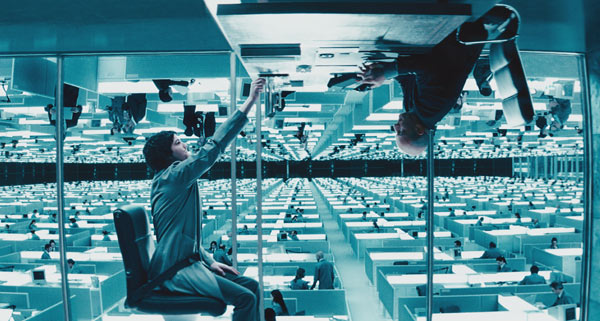 La producción es una autentica pasada, los decorados son de impresión y la dificultad de realizar semejantes imágenes se palpan. El director maneja con ligereza la situación, haciendo totalmente creíble la interacción de los habitantes del mundo superior, un mundo totalmente enriquecido, con los del inferior, totalmente pobres pero no por ello infelices. Las escenas en el lugar de trabajo llamado ‘Intermundo’, que conecta ambos mundos y dónde es el único lugar de trabajo donde los habitantes de ambos mundos se pueden comunicar de una manera más cercana, son totalmente realistas y bien dirigidas, haciendo que unos trabajen en el techo y otros en el suelo (según como se mire será al revés). Ah, y también en una acogedora cafetería llamada ‘Entre dos mundos’ situada en el mundo inferior, pero que es tan alta que los del mundo superior construyeron unas cabinas tele transportadoras para crear otro bar en el techo de este, resultando de lo más llamativo y hermoso.Añadir Anotación