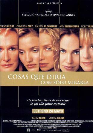Esta bien. Me suelen gustar mucho las películas que cruzan historias y personajes (Amores perros, Magnolia) pero tengo que reprocharle a "Cosas que diría con sólo mirarla" que su guión es flojito y le falta ritmo. Las interpretaciones son geniales, el reparto coral es bueno. Se supone que todas las historias tienen el nexo común de abrir una ventana al alma de la mujer, a través de personajes muy distintos, pero que todos sufren de una manera u otra. No todas las historias son igual de buenas. Mi preferida también es la de la mujer atraida por su vecino el enano (lo que me recuerda otra película que ansío ver, Vías cruzadas). Una interesante propuesta del hijo de García Marquez, bien actuada, aunque le falta dinamismo . Me gustó el final