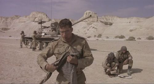 Todo en ella es soberbio: ese inicio de las huestes sovieticas arrasando un poblado; la ausencia de miedo ante la muerte de los guerrilleros afganos (espeluznante cuando ponen a un guerrillero bajo las cadenas del tanque...); la violencia y los gritos de la mujeres (clamando venganza); la visión del tanque (su claustrofobico interior que llega a enloquecer a cualquiera); la persecusión a pie de "la bestia"; David contra Goliat...