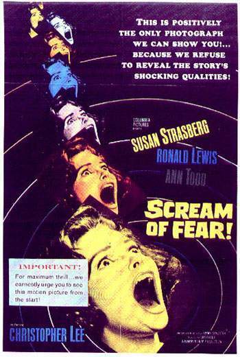 Hace años, cuando era pequeño, tuve la oportunidad de ver una peli en la tele que iba sobre la historia de una joven en silla de ruedas que ve el fantasma de su padre y que tenía algunas escenas realmente impactantes; desgraciadamente con el paso del tiempo olvidé el título de la peli y quienes eran sus actores dejando en mi memoria esos vagos recuerdos. Esa pelicula era "El sabor del miedo" y hasta hoy yo no lo sabía y lo he descubierto gracias a la revista de cine "Dirigido por" donde le dedican un reportaje dentro de un extenso monográfico que disecciona las mejores películas de la Hammer. Y yo sin saber que ese peliculón que vi de pequeño era una peli de la Hammer. Tengo que volver a verla, pero entre las escenas que se me han quedado grabadas está el plano que descubre el interior de la piscina que recuerda bastante a la fantasmagorica imagen de Shelley Winters bajo el agua en La noche del cazador. Si teneis la oportunidad de verla, no la perdais.