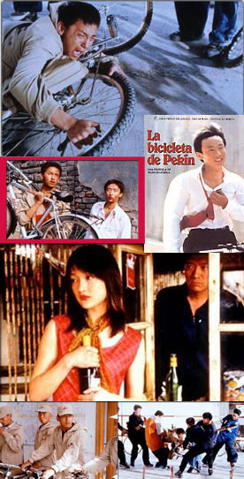 La vida en Pekín no es fácil, y lo vemos en esta película en la que un joven del campo se esfuerza por buscarse un empleo digno de repartidor y que tiene como medio de vida la bicicleta. Durante gran parte de la película asistimos al continuo enfrentamiento entre los dos jóvenes que se consideran dueños de la misma bicicleta que se la qitan de uno a otro, sólo que el pobre repartidor Guei, que la necesita para vivir, siempre se lleva palizas por parte de los amigos de Jian cuando le pillan con ésta. La peli nos cuenta las diferentes historias del Guei, tímido en indefenso chico de campo en una cuidad de 14 millones de habitantes, que trabaja duro pero una inexperiencia que le lleva a situaciones como la del salón de masajes. Por otro lado, Jian que es de una familia de clase media-baja tiene el privilegio de estudiar hasta que su padre con poco sueldo decide que solo su hermana podrá continuar estudiando, y para colmo una chica de su clase va detrás de él pero él no parece comprenderlo hasta que es demasiado tarde y ella se va con el chico más popular del barrio (Da Huan) y líder de una banda. Al final despues de una confrontacion entre Guei y la pandilla de Jian, dada la testarudez de Guei (que también se ve en su interes por recuperar el trabajo cuando le roban la bicicleta) que se aferra a su bicicleta que tanto significa para él puesto que es determinate para su vida y al que aprece que no le importe que le peguen por ella llega con ellos al acuerdo de compartir día si dia no la bici entre él y Jian. Entonces Jian al darse cuenta de lo insignificante que parece cuando Da Huan le quita la novia va a por el y le pega, y lógicamente se la devuelven incluso al pobre Guei que no tenía nada que ver pero estaba con él.Añadir Anotación