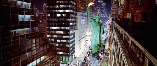Respecto a la escena de la Estatua de la Libertad (y la sensación de apología del american way of life que dicen por ahí abajo), en estos tiempos de corriente de opinión mayoritaria anti-todo lo que huela a EEUU, es natural que sea mal vista. Sinceramente, creo que el guionista lo último que pensó cuando escribió la escenita de marras fue darle un significado simbólico de poderío americano. Simplemente la peli se desarrolla en Nueva York y que mejor que la Estatua para representar el espíritu de la ciudad. Si la acción transcurriese en París y los cazafantasmas se montasen en la Torre Eiffel seguro que nadie lo vería como una provocación gabacho/napoleónica para que todo el mundo entone la Marsellesa.