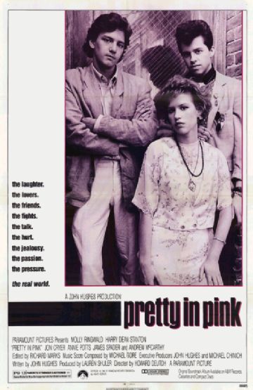 John Hughes, el rey de las cintas adolescentes ochenteras acertó de nuevo con Pretty in Pink, una comedia romántica muy bien escrita que utiliza todos los clichés del género a la perfección. Es la típica historia de "polos opuestos terminan atrayéndose" y "lo nuestro no puede ser porque somos de mundos distintos", el ritmo es rapidito sin darle mucho énfasis a lo dramática que puede ser la agonía adolescente, los personajes están bien dibujados y resultan entrañables. Molly Ringwald muy guapa y carismática como Andie, Jon Cryer irritante como Duckie pero así es el personaje, McCarthy hace bien de galán, Annie Potts muy divertida. Súper recomendable para los fanáticos de Hughes, de las comedias románticas y de los ochentas, y el soundtrack es genial.