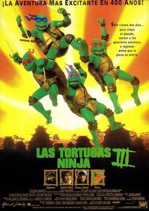 | Crítica |  Puntuación del crítico: 5 | Modesta e Infantil.Asi calificaria yo a esta 3ª parte de las aventuras de nuestos Anfibios amigos verdes.La primera supuso una innovacion dentro del animatronics,y un punto muy acertado ya que la serie vivia su epoca dorada en todo el mundo.Nos presentaba el encuentro con April,con el Despedazador,etc.La segunda,era mucho más espectacular,debido al enorme exito de su predecesora,a su gran recaudacion,incluido el Merchandising,y a la legion de fans que genero en torno a ella.Un argumento donde nos presentaba a personajes nuevos,con más efectos especiales,más accion,y más humor "verde" de nuestras amigas las tortugas. Esta tercera parta fue enfocada desde un prisma más infantil.Es decir,para captar publico más joven que el que normalmente asistia a las aventuras de estos Quelonios. Asi se nos presenta este film.Mucho más inocente,con menos pretension,menos accion,más chistes(algunos más acertados que otros),y por supuesto,menos sangre. De argumento sencillo.Buscando un nuevo Hogar las tortugas dan con una parte de la estacion de metro cerrada y abandonada,alli encuentran un extraño cetro,limpiando uno de los vagones,del siglo XVII Japones.Increiblemente,su amiga April consige activarlo,viajando a ese siglo.Los jovenes heroes deciden ir en su busca para traerla de vuelta lo antes posible.Pero además,llegaran a un poblado,donde tendran que defender a sus humildes gentes,del malvado señor feudal. Sin duda sencillo,pero efectivo.Una mezcla de viaje en el tiempo,con "Los Sietes Samurais" y un poco de "Robin Hood".Asi aqui se muestran los mismos,y geniales,efectos especiales de los animatronics,más algun que otro nuevo efecto gracias a la magia del cetro y del propio y malvado señor.En este caso la violencia es minima.Si,hay peleas,pero mientras que en las otras,no escatimaban en destrozar a sus enemigos,aqui simplemente los dejan aturdidos,mientras la camara sigue sus caidas,sus volteratas,y sus movimientos marciales. Expone una serie de valores como la amistad entre nuestras amigas las Tortugas,el defender al más debil(ya que el poblado es de campesinos,sin guerreros,apartando inlcuso a los niños que quieron defenderlo de las armas),ayudar al progimo,etc.Muy loables,y más asequibles. La Direccion de Stuart Gillard es correcta,deselvolviendose perfectamente en las escenas de accion,con movimientos de camara rapidos,planos cortos,etc.Pero sin convertirse en un batiburrillo inseguible,con coreografias muy conseguidas,tanto como en primera o segunda entrega.Dialogos cargados de humor,con sus tipicos chascarrillos (Cowabunga!),con un desarrollo más adolescente las personalidades de estos personajillos verdes,convirtiendo en algo mas cercano a los niños.Las actuaciones,muy correctas,de gran humor,cosa que siempre has destilado estos Quelonios.Musica correcta,tampoco algo destable,pero se deja oir sin ningun problema. Pero el problema de esta tercera entrega,es la falta de accion.Al intentar rebajar su contenido de "Mamporros" aun grado mucho menor para atraer a un publico más menudo,a los seguidores de esta serie nos aburre un poco.Por que las Tortugas Ninja siempre han sido accion,divertidos comentarios,aventuras por doquier,y mucha arte marcial.Y Eso es lo que le falta a esta entrega,un poco más de accion. Aun asi,una grata pelicula,que se deja ver,que trae recuerdos de tiempos mejores,y que sin ser una maravilla,completa la trilogia cinematografica de nuestros cuatro amigos verdes.