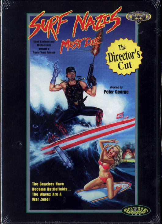 | Crítica |  Puntuación del crítico: 8 | Cuando algun aficionado al genero del "Terror" escucha un titulo como "Sgt Kabukiman","El Condon Asesino","El vengador Toxico" o "Los Surfistas Nazis Deben Morir",irremediablemente piensa en una compañia...Troma. Hace bastantes años(sobre 4 creo recordar),un amigo aficionado al genero más casposo del terror,me dejo esta cinta.Mi Conmocion fue tal al verla,que prometi no olvidarme de ella,ni de su titulo.Por supuesto,esta memoria mia me jugo una mala pasada,se me olvido.Casualmente las otras noches,a la hora del teletienda en las cadenas privadas,estaba yo navegando cuando...Vi esta Pelicula.Lei el argumento,y no me lo podia creer,era la que habia visto,era ella,habia vuelto a mi,el destino lo queria asi...y yo al destino le tengo mucho respeto.Asi que recogi esta valiosa mercancia y aqui me teneis,informando,como siempre,sobre lo que se puede considerar "Uno de Los Mayores Clasicos Troma de Todos Los Tiempos". Todos los aficionados al Serie B más B que existe,conocemos a Troma,y ya sabemos lo que nos vamos a encontrar en sus producciones.Argumento Surrealista,Humor Por Doquier,Situaciones absurdas,Unos Litros De Hemoglobina,Sexo (o Tias Desnudas),y una serie de personajes disparatados e incomprensiblemente lerdos.Y esta,"Los Surfistas Nazis Deben Morir",no es una excepcion. En si el argumento ya es disparatado.En lo que queda de las Costas de EE.UU una serie de Vigilantes de Playa aficionados al surf de tendencias Neonazis se dedican a Montar su imperio del mal y de corrupcion.Pero siempre ahi algo de por medio,una panda de Cabalga Olas,que luchan contra ellos por la supremacia maritima y territorial,con el unico objetivo de convertir esas costas en un lugar habitable.Entre Ellos Leroy,un joven hombre de color,que en un encuentro con el jefe de los surfistas nazis,Adolf(que nombre más apropiado),le recrimina lo que esta haciendo.Sufrira el implacable poder del Nuevo Reitch y morira a manos de su..Garfio.A patir de ahi,si ya de por o era absurdo,se vuelve más absurdo todavia.La madre de Leroy decide vengarse,y revistiendose de Cuero,Plomo y una Harley,se dedica a repartir tiros y mamporros por doquier,con la ayuda de Los Surfistas "buenos".Por supuesto,los malos tienen sus armas,y entre medio,nos colocan alguna escena de Sexo,y de Sado "Ligth",algunas tias de generosa delantera,y la accion en si.Y ese Final en donde la Madre de Leroy se toma la merecida vengaza volandole la cabeza en mil pedazos a Adolf,con esa cara de Satisfaccion orgasmica...Impagable. Como ya sabreis la Direccion es aberrante,y las escenas de Surf estan sacadas directamente de Documentales,o por lo menos lo parece.Las Escenas de accion,mira tu,si estan resultas de una forma más...digamos,correcta. La Musica,pues una barraca de feria con los Midis de los exitos de La decada prodigiosa,suena mejor. Las actuaciones,¿Actuan?Estan ahi,sobreactuan,lo hacen mal,se rien de ellos mismos,a veces se lo toman más en serio,pero nada,malos como ellos solos. El Guion,frases estupidas,de humor increible,irreberentes,alocadas,Frases lapidarias de la madre sacadas del peor film de policias...en resumen,desternillante. Y es que Troma es eso,desternillante,no te lo puedes tomar serio,con humor siempre,sino,apaga la television y a dormir.Cada pelicula de Troma es más absurda,rompe-torax,graciosa,cachonda,guasona,chistosa e irreberente. Si te quieres reir de verdad,pasartelo bien,y que se te quiten las penas que puedas tener encima,pillate esta o cualquier pelicula de Troma,solo por eso,se merece una buena nota.