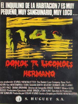 Serie Z muuy divertida, aunque no se aconseja para estomagos delicados; Basket Case es en el fondo una historia de amor fraternal y de valores añejos. En esta epoca de desapego y de familias disfuncionales, los hermanos protagonistas tiene muy claro que nada en este mundo se va a interponer entre ellos y que la vida no va a separarlos ( un bisturí puede, pero no la vida) . Qué más dan las pequeñas rarezas de Belial- un chaval con, digamos, una gran personalidad- y el que haya sembrado la ciudad de cadaveres de jovencitas turgentes? La familia es lo que importa y , mientras su hermano pueda cuidar de él, todo irá bien. Un splatter que saca lo mejor que llevamos dentro.