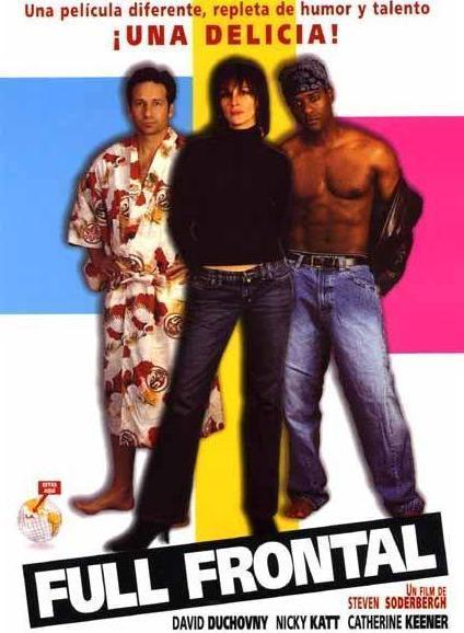 | Sinopsis | Carl Bright (David Hyde Pierce) trabaja en Los Angeles Magazine y escribe guiones como actividad complementaria; cree comprender las razones por las cuales su esposa es infeliz. Ésta, Lee (Catherine Keener), es la vicepresidenta de recursos humanos en una gran corporación y compensa sus frustraciones despidiendo a trabajadores de la firma. Su hermana, Linda (Mary McCormack), trabaja como masajista en un hotel y le embarga la preocupación de no estar consiguiendo el hombre ideal. Calvin (Blair Underwood) es la estrella de una exitosa serie televisiva que acaba de lograr despuntar en la gran pantalla encarnando a Nicholas, el compañero de una gran estrella del cine además de objeto de un «perfil de celebridad» que escribe Catherine, encarnada por Francesca (Julia Roberts). Nicky Katt interpreta a Hitler en una pieza teatral, en tanto que Gus (David Duchovny) produce la película de Nicholas. El día tendrá su cénit en la fiesta del cuadragésimo aniversario de Gus que tiene lugar en un exclusivo hotel de Beverly Hills. "Full frontal" es una comedia contemporánea que se desarrolla en Los Angeles, siguiendo las complicadas relaciones establecidas entre estos amigos, mientras hacen frente a los frágiles lazos que les unen.