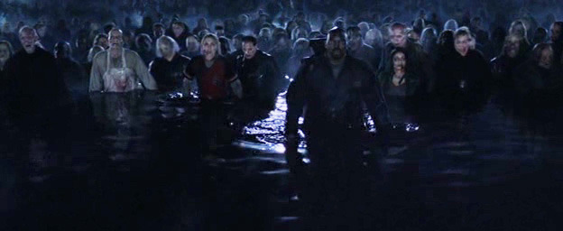 Romero consigue meternos en una atmosfera sucia y sombría de angustia cuando nos metemos en el mundo de los muertos, mientras que en la ciudad de los ricos se respira la tranquilidad como si nada hubiera pasado, esta idea me gusto mucho, y el ataque de los zombies a dicha ciudad es magnifica, esos zombies saliendo del agua se me ha quedado grabada en la retina.
