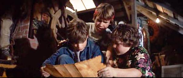 Esta peli tiene algo que hace que le cojas cariño... pero analizándola fríamente, no es ni mucho menos una obra maestra. Tiene un guión un poco absurdo (con respecto a la historia del mapa) y NO ES TAN INFANTIL como dicen (los niños se hartan de decir "mierda" y "joder" durante todo el principio.