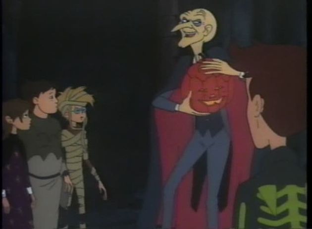 Esta película me la alquile de pequeña millones de veces en el videoclub, me encantaba, pero ya no volvi a saber de ella, solo una vez que la pille de casualidad en la Cartoon Network pero ya era demasiado tarde para grabarla. La película cuenta la historia de 4 niños que en la noche de Halloween van a parar a la casa de un viejo, y este, desacuerdo como se toma en la actualidad esta festividad les envia a los niños a traves de los tiempos para que vean los origenes de esta festividad tán maltratada en nuestros dias, la vi hace mucho pero aún la tengo fresca en la memoria, mi personaje favorito era el que iba vestido de momia, era el que le daba un poco de humor a la historia, a mi de peqeña me daba un poco de miedo la película y me divertia mucho con este personaje. La película esta basada en la novela de mismo titulo de Ray Bradbury, quien hizo el guión de la película y puso la voz del narrador en la versión original. Una de esas películas que las ves de pequeña y se te quedan grabadas en la memoria, me encantaria conseguirla pero no la sacan en dvd y en el emule no esta. Entrañable.