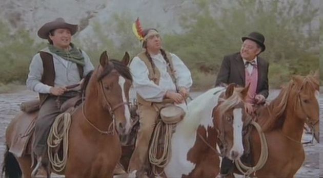En esta ocasión el Ozores team parodiaba el cine del western. Un pueblo amenazado, dos bandas rivales...y en medio dos forasteros (Esteso y Ozores). Atención con el abuelete del sheriff, que dimitía de su cargo cada vez que venian las dos bandas de forajidos al pueblo....y cuando se largaban volvia de nuevo a ser sheriff jajaja...que cobardica. Mención especial para Juanito Navarro, interpretando a un indio navajo llamado "BlackandDecker" (no tiene desperdicio la charla que tiene con un indio...de la india!!! jajaja totalmente delirante). Alguna que otra tia en pelotas y Adriana Vega haciendo de la hija del alcalde ( por cierto algo ninfomana la moza).