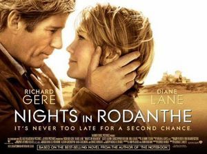Nueva aportación más al género romántico de la batuta del cansino Nicholas Sparks que se añade a la ya larga lista formada por la mediocre Mensaje en una botella (aunque con una banda sonora de Gabriel Yared simplemente extraordinaria), la reivindicable Un paseo para recordar (con una excelente interpretación de Mandy Moore) y la maravillosa El diario de Noa (uno de los mejores films románticos de la decada). Noches de tormenta estaría englobada junto a Mensaje en una botella, aunque salvando las distancias. El film de Wolfe es sumamente predecible, con un final horrendo y típico de films de estas caracteristicas y con unos personajes que realmente no llegan a calar en el espectador y con unos patetísimos efectos especiales que parecen realizados en una noche de mala borrachera. Lo mejor acaba resultado Diane Lane, volviendo a demostrar que fue la mejor actriz de su generación, una lastima que su testamento cinematográfico vaya a ser esta película (porque Killshoot no cuenta como tal ya que se rodó hace unos años a pesar de que no se ha estrenado todavia), me hubisese gustado que hubiera dejado el cine por la puerta grande, con una gran película y una gran interpretación, se la echará de menos.