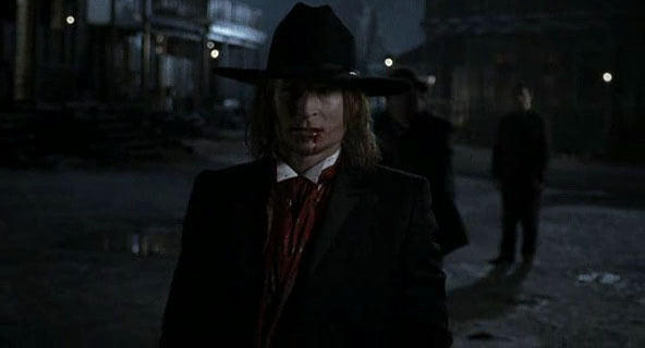 Todo hay que decirlo. La unión de vampiros y western está conseguida. La pelicula tiene un tono pulp la mar de disfrutable, a pesar de lo malisima que es. Incluso tiene piezas musicales bastante escuchables. En este caso, el problema es que podrían haber sido vampiros que simples cuatreros del tipico western, sobre todo, porque hay momentos que incluso se mueren con simples balas, normales y corrientes. Tenemos vampiros que no usan sus poderes apenas y una protagonista que en los videojuegos tiene poderes sobrenaturales hasta en las cejas y que aqui necesita hasta ayuda para poder con unos pocos vampiros. Que me lo expliquen. No es que espere una buena adaptación con Uew (aunque tiene sus detalles, como las cuchillas de Rayne, su vestido interior o la sociedad Brimstone) pero sí algo coherente, dentro de lo que cabe, con el material que usa.