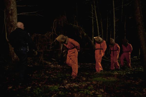 Canada, cerca de la frontera con Estados Unidos. Jalil, Michelle, Gab, Leslie y Tom conducen después de una boda cuando se encuentran con un coche que bloquea el camino. Se ven obligados a pararse. Se trata de la policía, que les piden las identificaciones. Los policías parecen sospechosos y empiezan a interrogarlos. La situación empieza a ponerse tensa y el grupo acaba detenido y enviado a una cárcel especial en el corazón del bosque donde les esperan las jaulas y un buen número de preguntas sin respuesta.Añadir Anotación